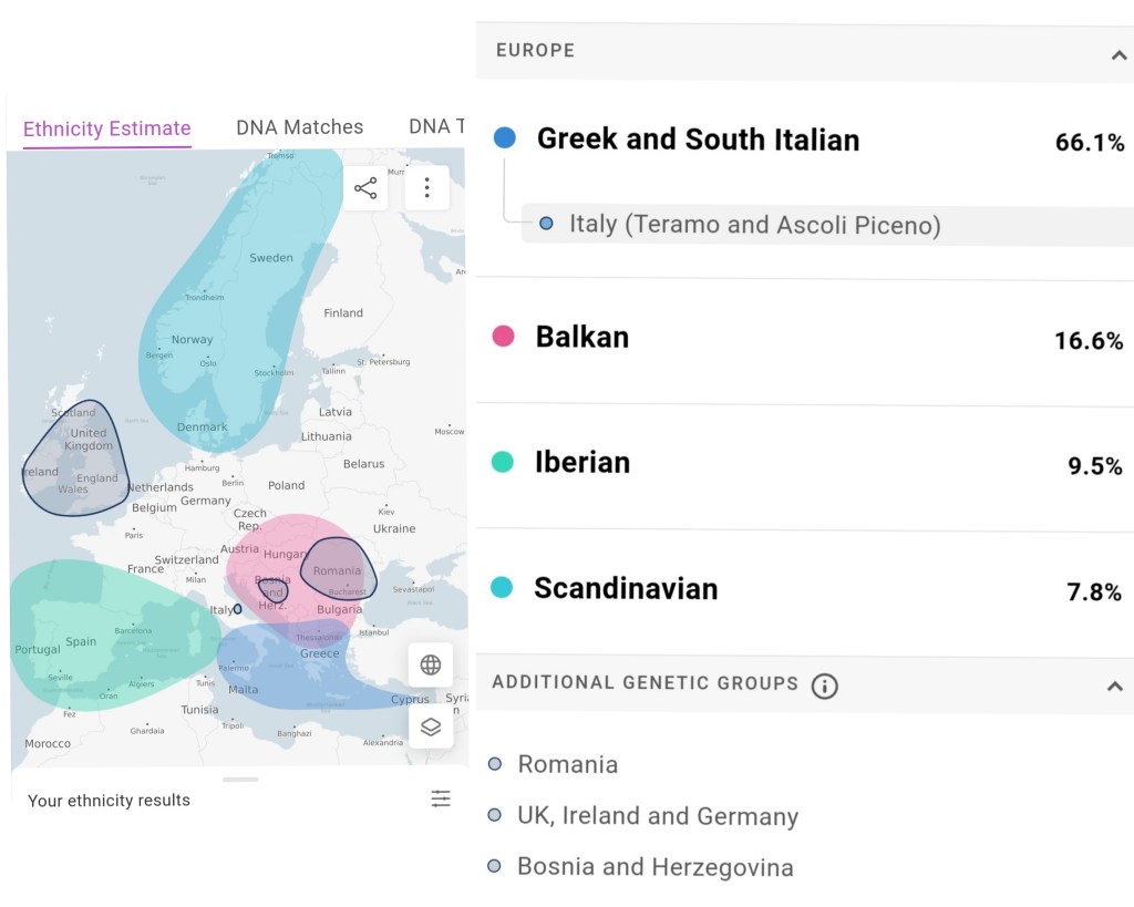 If I had to guess, most of the new ethnicities that were revealed probably came from my father’s side of the family, though perhaps some of it came from my mother’s father, as she did not know anything about him because he had left when she was 4 years old. I was able to see the immigration papers from my grandmother and great-grandparents; they were from Romania. There is a likelihood that some of the different ethnicities, especially the ones near Romania are from my ancestors on my mother’s side. Whatever the case is, it’s interesting information to discover.